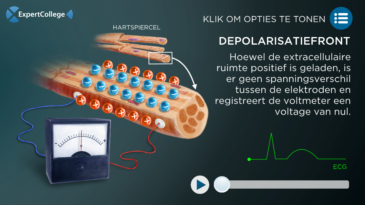 Hartspiercellen hebben een langere depolarisatiefase dan andere cellen in het lichaam. De langer durende depolarisatie van de cardiale spiervezels wordt veroorzaakt door een belangrijk verschil tussen de celmembranen van de hartspier en die van de skeletspieren. Het celmembraan van de cardiale spiercellen bevat veel langzame calcium-natriumkanalen. De (relatief langzame) influx van natrium- en calciumionen door deze kanalen is verantwoordelijk voor...
