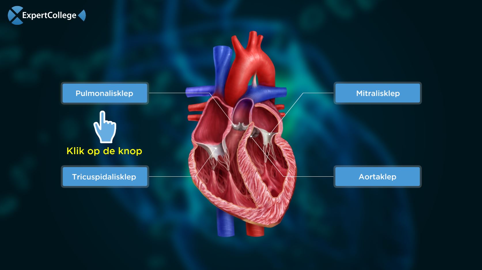 De halvemaanvormigekleppen (de aorta- en pulmonalisklep) voorkomen dat bloed vanuit de aorta en de arteria pulmonalis naar de ventrikels terugstroomt. Ze zorgen ervoor dat het bloed vanuit de ventrikels efficiënt naar de pulmonale en perifere circulatie wordt gepompt. Pulmonalisklep Als het rechter ventrikel zich heeft gevuld wordt de pulmonalisklep geopend. Via de pulmonalisklep verlaat zuurstofarm bloed het rechter ventrikel en...