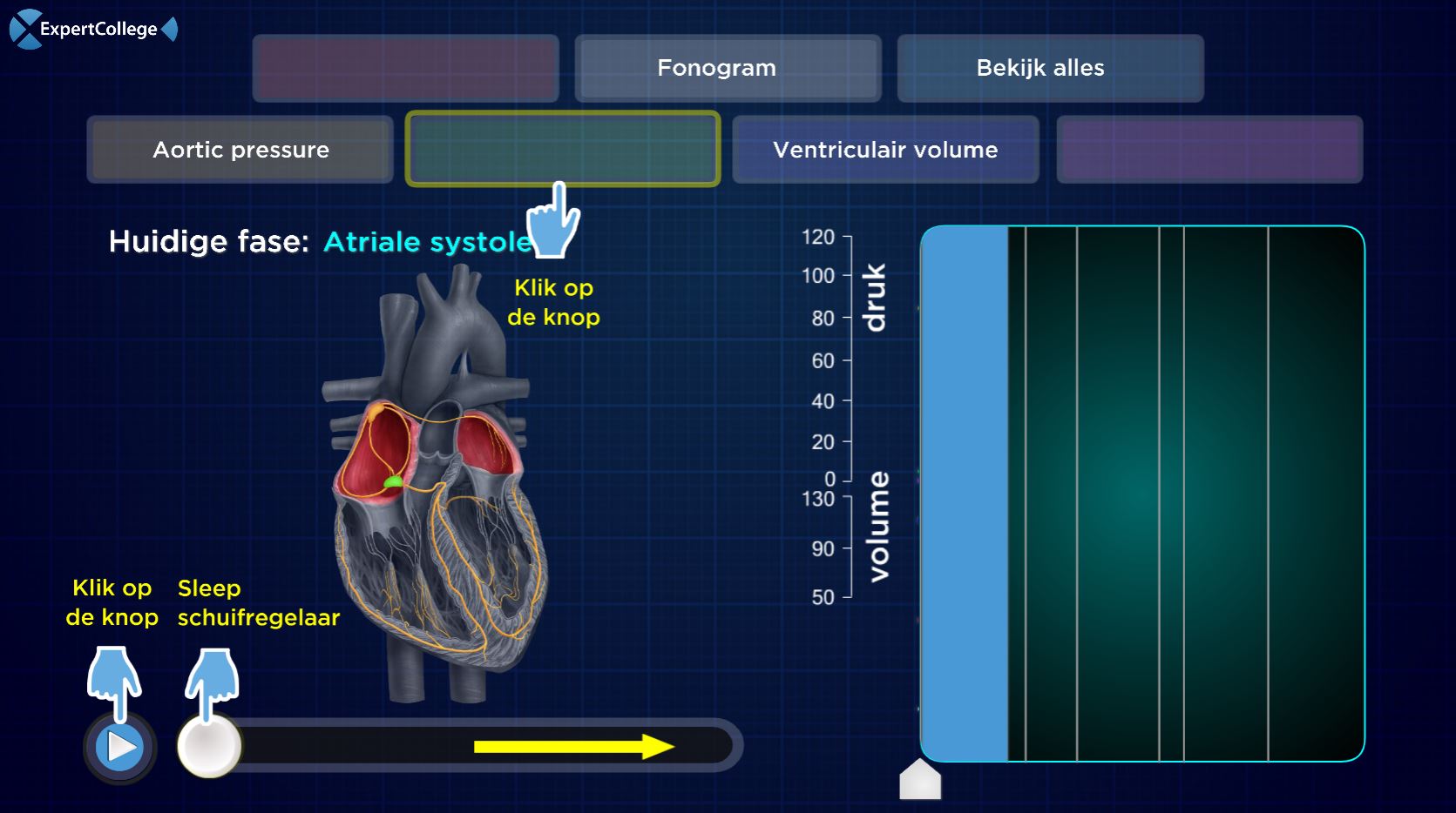 Elke hartcyclus bestaat uit de diastole en de systole. Wanneer niet anders omschreven wordt steeds gerefereerd aan de ventriculaire (dus niet de atriale) systole en diastole. Tijdens de diastole treedt relaxatie van de ventrikels op, terwijl de ventrikels tijdens de systole contraheren. De animatie geeft de drukveranderingen in de aorta, het linker ventrikel en het linker atrium tijdens de hartcyclus...